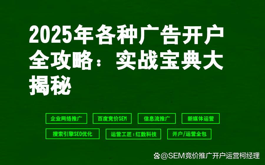 通过以上内容的介绍,相信大家对2025年各种广告开户有了更全面的了解。无论是百度、谷歌还是抖音、小红书等平台,都需要明确广告目标、了解平台特性、准备相关资料并选择合适的代理商进行合作。同时,掌握基本操作技能并持续学习与实践也是提高广告效果的关键。希望这份实战宝典能够对你有所帮助!
