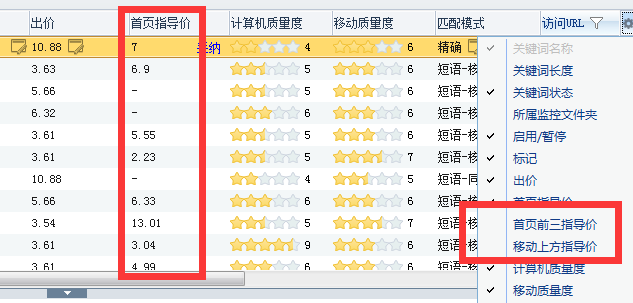 在最新的百度推广助手6.5版中,引入了关键词指导出价功能,分别对PC首页、首页前3及移动上方出价进行了指导建议。如图: