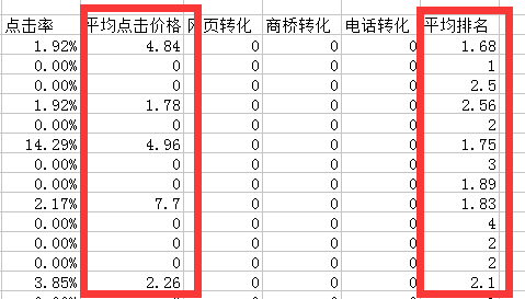 关键词出价如果比点击均价高很多,说明关键词价格可能就有虚高的成分,可以把价格降至点击均价左右,然后看是否影响账户的转化效果。