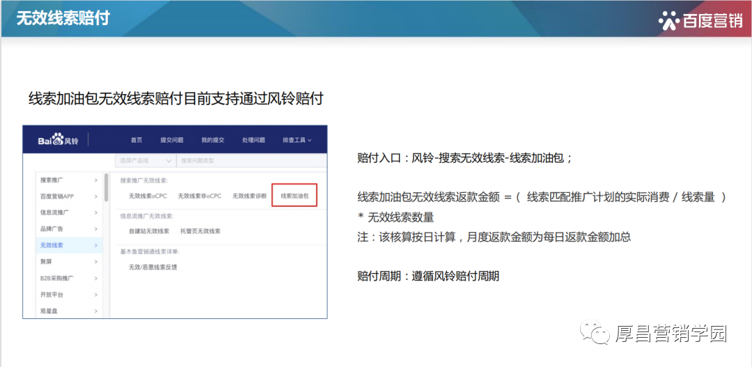 线索加油包这个产品,是百度的一个尝试,从官方说明文档来看,是百度的自由线索池,吃掉一部分流量,根据我十年的行业经验来看,百度应该是在某个位置增加一个收集信息的广告位,肯定不是首位广告位,甚至可能都不是内部流量的广告位,毕竟百度的产品体系是那么庞大。