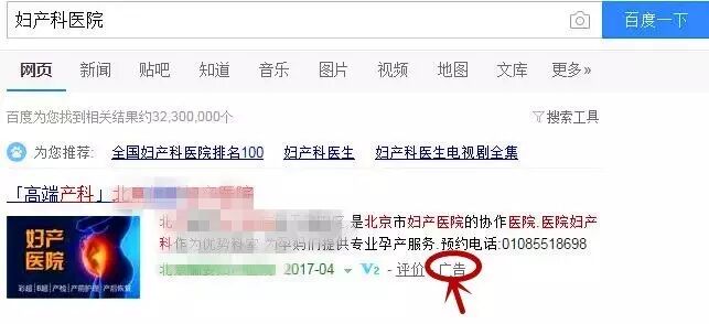 执法人员使用百度、搜狗搜索平台对200余家医疗单位进行了网上巡查时,发现“广告”标识已经取代原来的“商业推广”(《互联网广告管理暂行办法》第七条规定)。但是,当执法人员输入医院名称时,仍有部分医院在搜索引擎中的“广告”部位出现含有绝对化用语、未取得医疗广告审查证明等内容的广告。