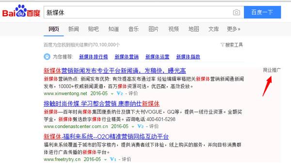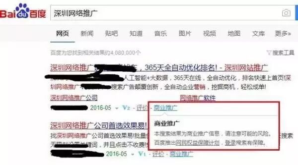 百度对搜索结果页面特别是首页的商业推广信息数量进行严格限制,每个页面商业推广信息条数所占比例不超过30%。