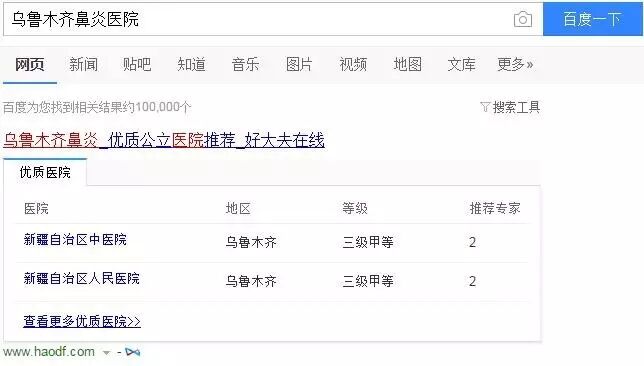 现在再用百度搜索“乌鲁木齐鼻炎医院”关键词,已看不到爱德华医院的信息: