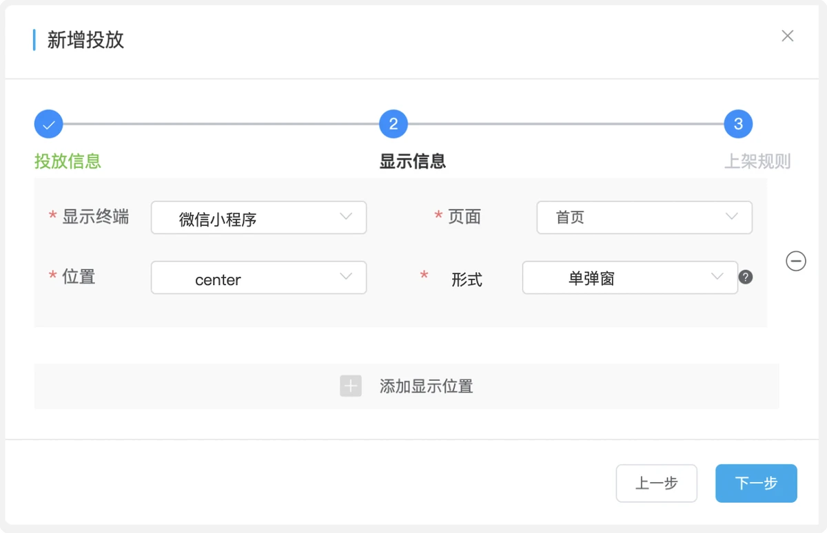 - 显示终端、页面、位置、形式:这些都比较好理解,不做过多解释。