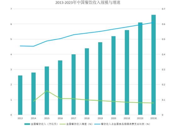 正所谓:“民以食为天”美食,往往是大家都追寻的舌尖上的味蕾享受。随着移动互联网和第三方支付的高速发展,团购、外卖平台纷纷涌现,在此浪潮的冲击下,加上现代人对美食更注重品味与价值,特别是80、90后也成为美食行业的主力军,餐饮美食行业无疑进入了一个全新的时代。据艾瑞数据显示,2013-2023年中国餐饮收入规模与增速呈上升趋势。