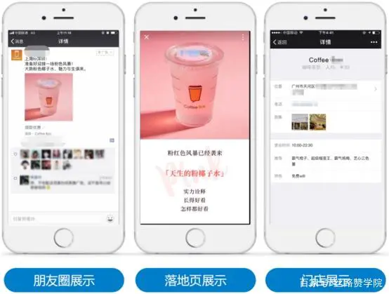 投放诉求:通过品牌特色招牌产品“粉色椰子水”和基于微信生态朋友圈本地推广来树立品牌形象和提高认知度,吸引用户点击进去浏览,并最终实现下单转化。