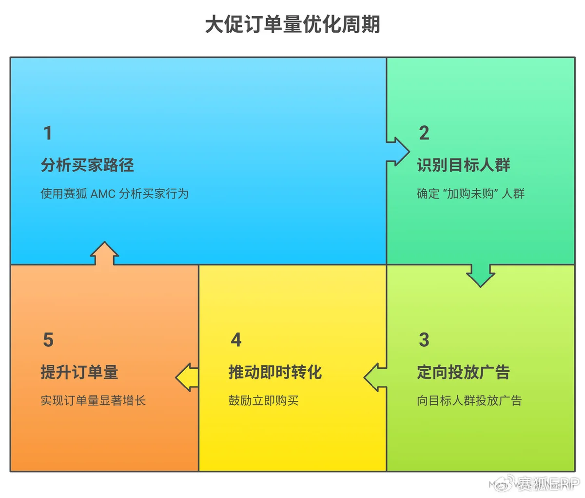 大促预热期单量增长乏力,通过赛狐 AMC 买家路径分析发现:近 1 个月 “加购未购” 人群规模已达日常 3 倍。基于此,大促期间针对该人群定向投放广告,高效推动即时转化,最终实现大促订单量同比提升 120%。