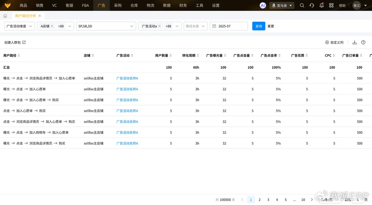 上述场景的落地,核心依赖赛狐的创新突破 ——将 AMC 消费者路径数据从 “店铺维度” 拆解至 “广告活动维度”: