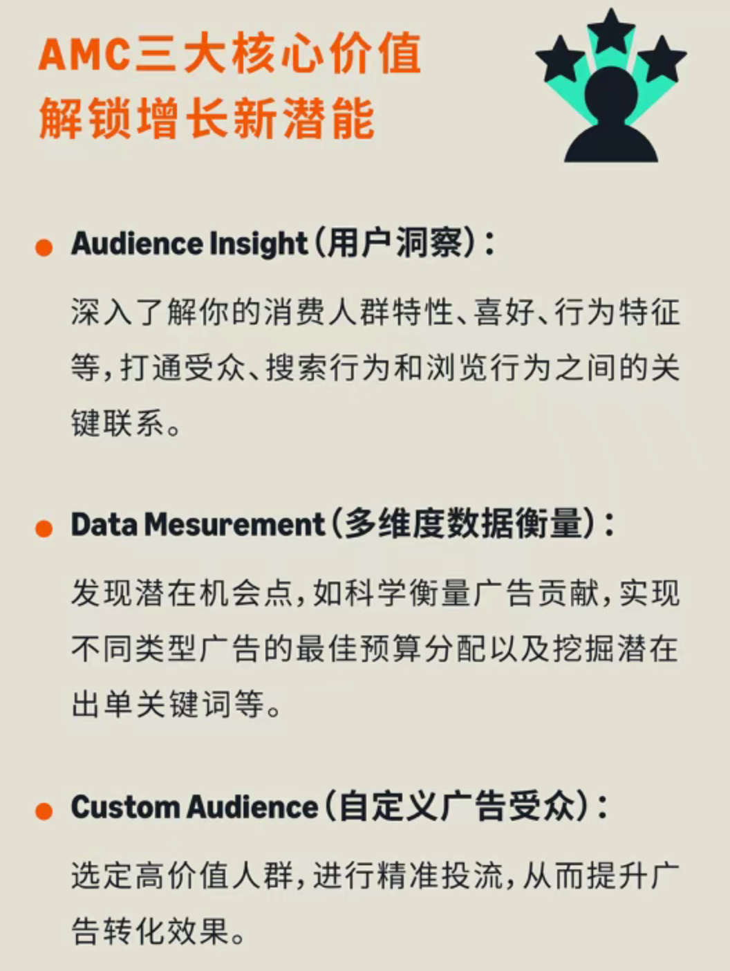 · 构建精准画像:通过分析AMC数据,卖家可以构建精准的消费者画像,明确目标受众群体,从而实现更精确的广告投放和个性化营销。