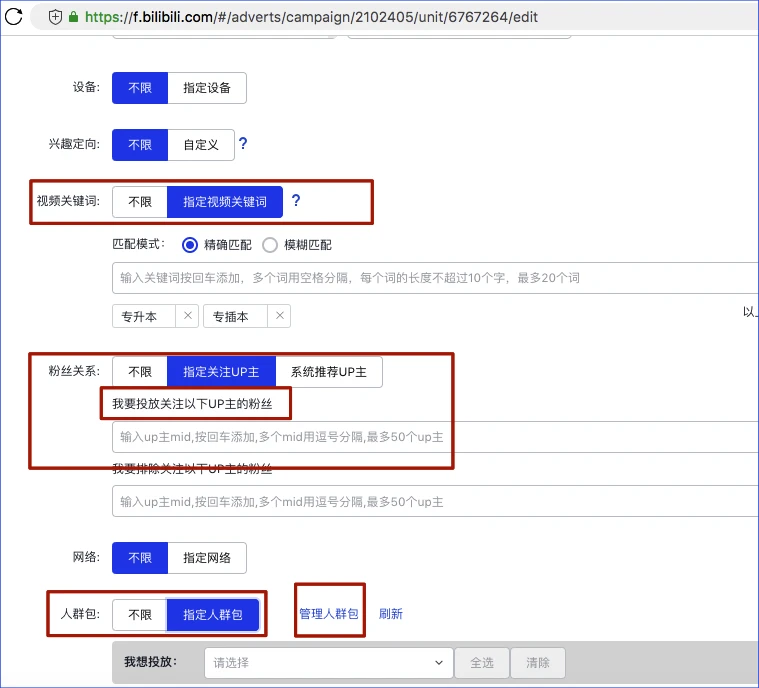 bilibili起飞专业版和三连推广都有一个主要共同功能即人群定向