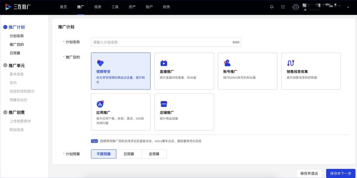 bilibili起飞专业版的推广功能主要分为视频推广 和 直播推广 两块功能入口。