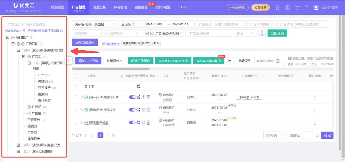 因此,我们开发了“树形导航”功能,参照亚马逊后台广告展示方式,帮助您快速定位想要查看的广告!