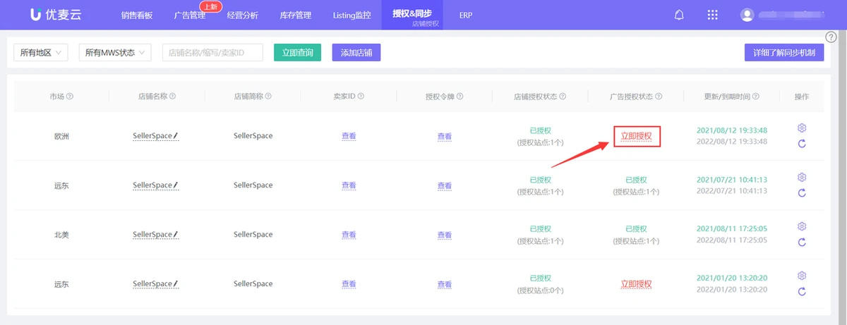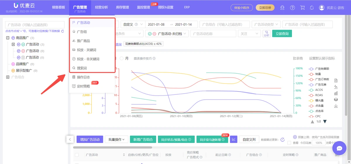 优麦云的广告系统,通过亚马逊官方广告接口,自动同步店铺的所有广告数据。