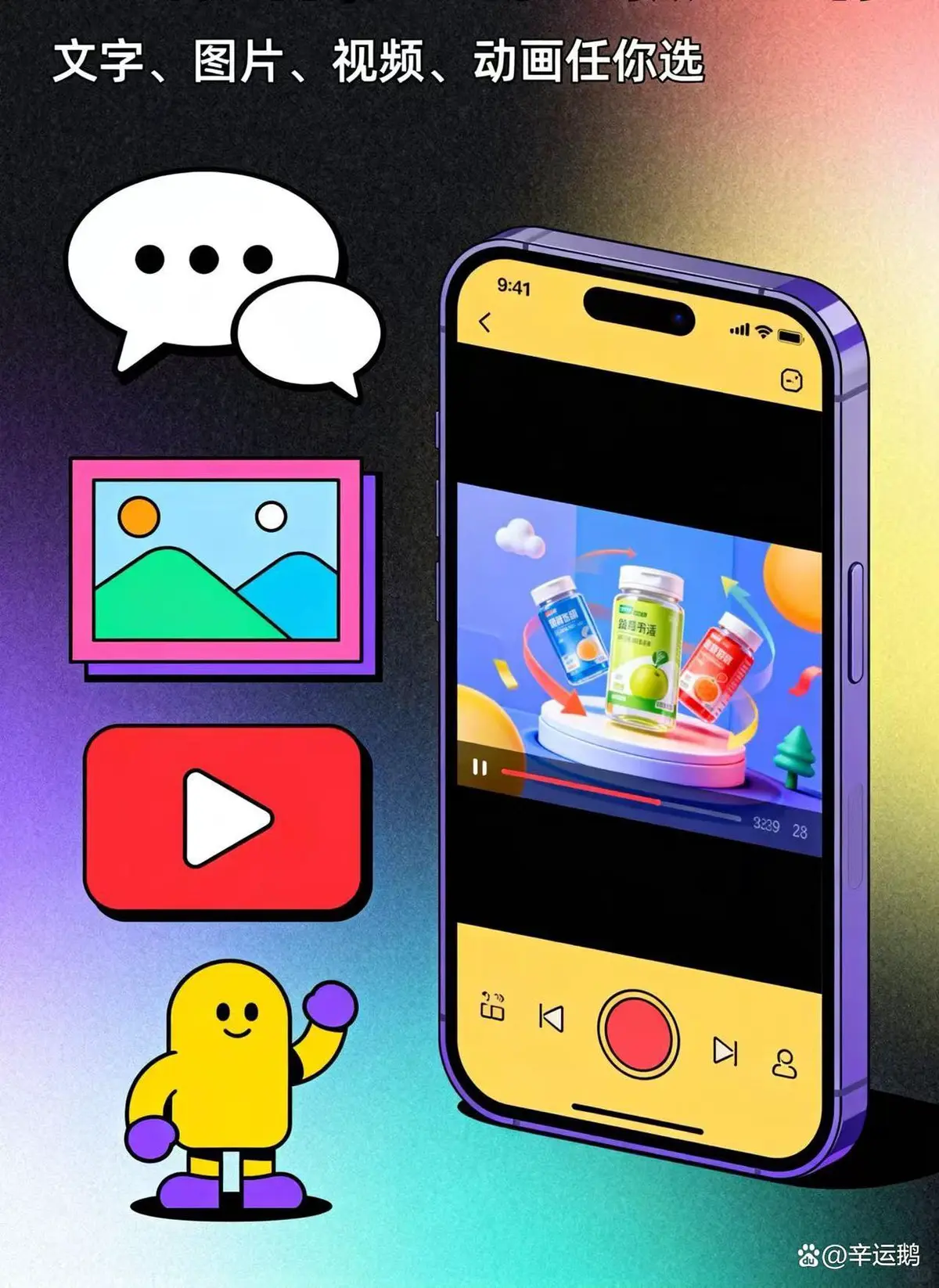 文字、图片、视频、动画……各种形式任你选。现在短视频广告特别吃香,短短十几秒就能抓住用户眼球。