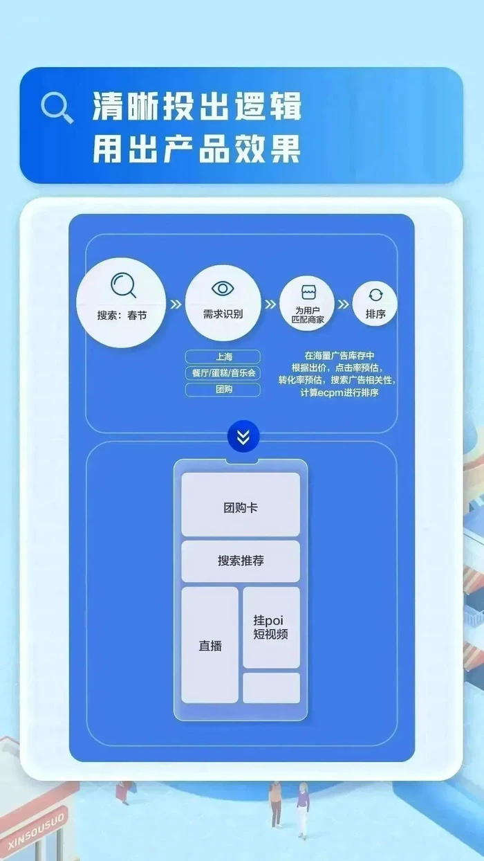 对生活服务商家而言,「搜索广告」的关键价值有三:首先,不仅支持多种营销目标和投放体裁,广告主可灵活表达营销诉求,且点击率和转化率都是能够预见的,成本可控,投入产出比较高;