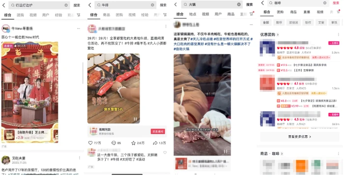 从左到右依次为:直推直播间、短视频引流直播间、短视频推门店、团购卡