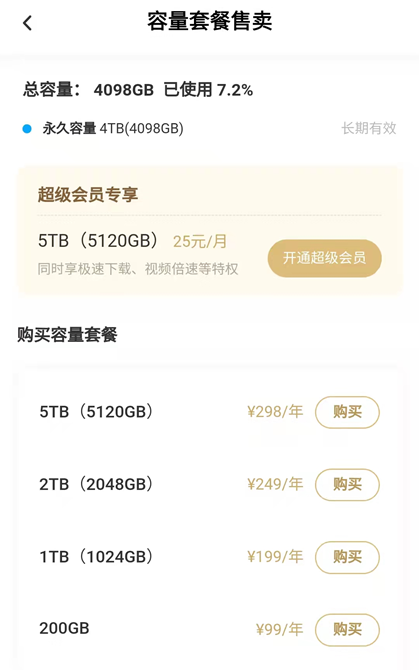按照百度网盘现有的规则,每名用户有4TB永久免费容量,扩充容量的价格分别为298元5TB、249元2TB、199元1TB,时效期均为一年。从绝对数额上看,用户付费远远覆盖不了百度网盘的硬件成本,而这只是百度网盘众多成本中的一项。