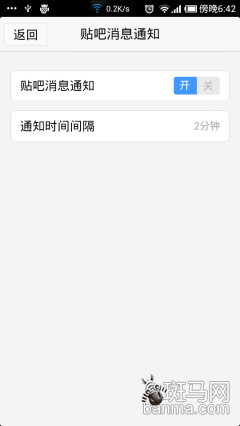 除了在贴吧首页界面能够看到回复消息的提示,在百度搜索3.5 for Android的设置界面中,也针对贴吧消息通知设计了相应的选项,并能设定通知间隔时间,由此可见该功能还是比较人性化的。