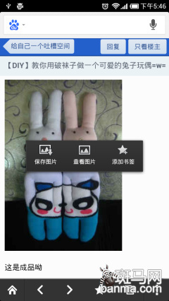 正是对贴吧纯图贴的想象,为了使图片阅读更加便利,百度搜索3.5 for Android可以扫描图贴中的全部图片,用户通过按住单一图片,点击图片查看按钮,进入图片查看模式。