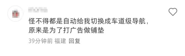对此,有网友吐槽:“想关都不知道怎么弄。”“广告如果在拐弯、限速等位置出现,非常容易误导用户。”“这种分散注意力的行为,出了事故谁负责?”“累了困了,应该去服务区才对,怎么能倡导喝饮料提神呢?”