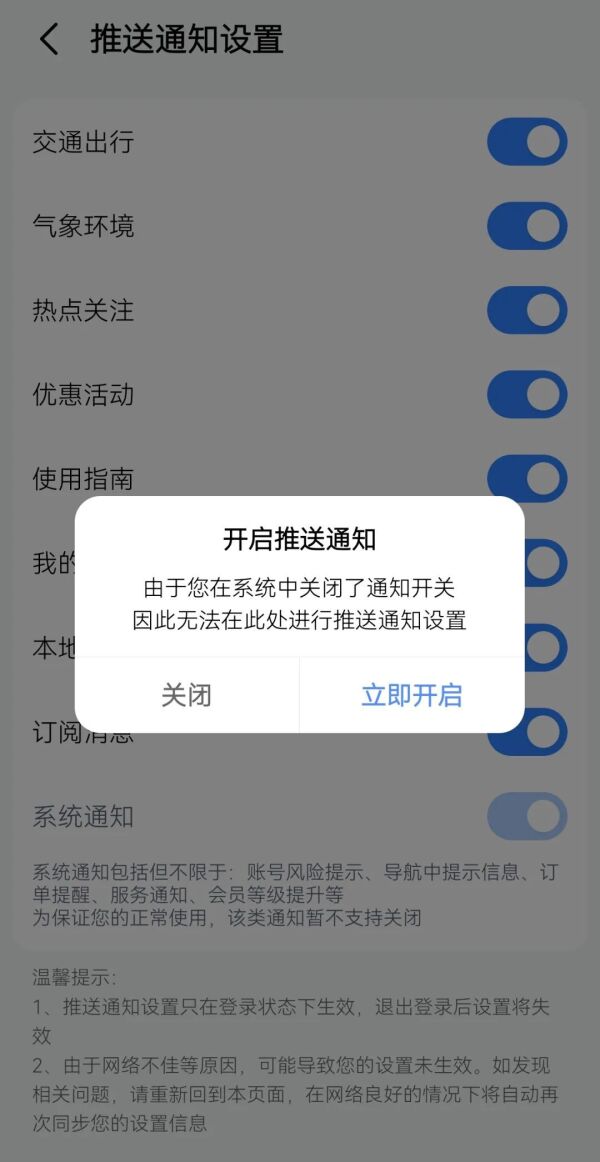 高德地图需开启系统通知后才能取消广告推荐