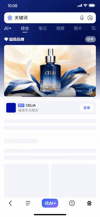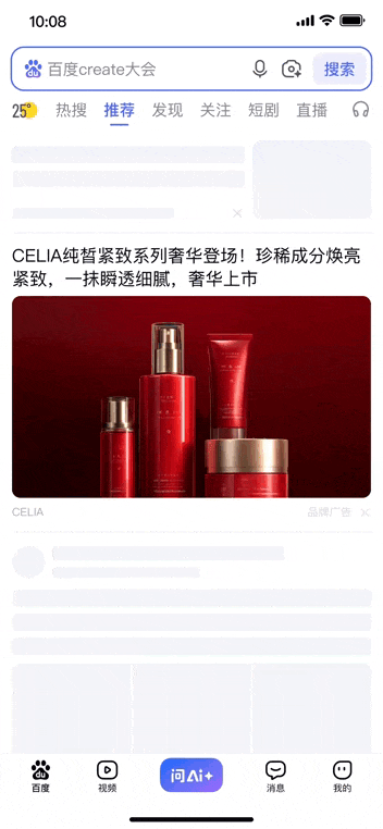 信息流边看边播、划线互动样式,给予用户沉浸式的观看体验和满满节日氛围,在百度APP首屏推荐页通过强交互样式,让用户看出兴趣、划出兴趣,促进种草转化。