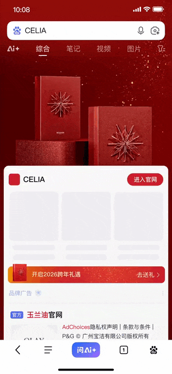 通过彩蛋、强入场动效等创意交互,打造沉浸式体验,在强化品牌认知的同时,有效提升转化。同时,品牌百看也支持强入场动效,红色通顶色营造节日氛围;搜索彩蛋需下单炫动品专,且提前7天沟通;强入场渐进增强、品牌百看样式需提前21天沟通。
