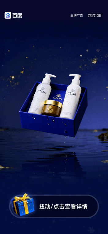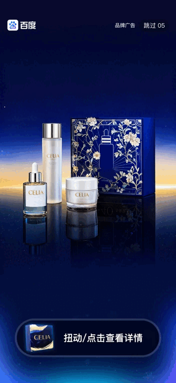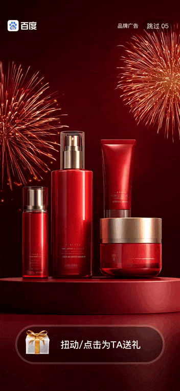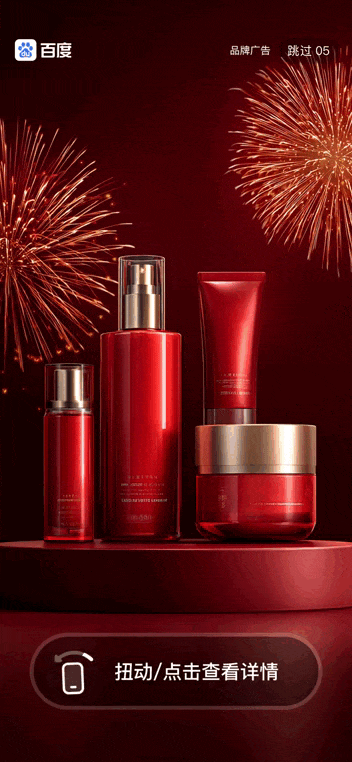 在开屏5秒视频播放过程中,用户产生交互即自动迸发惊喜彩蛋,新年倒计时动效烘托氛围感,实现品牌认知+节日共鸣双效合一;同时支持自定义品牌产品图、品牌logo、品牌slogan等,在百度APP、百度地图、百度网盘、百度贴吧、好看视频频道均可使用。