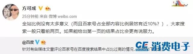 文章作者方可成当然坐不住了,通过个人微博继续回应道:如果能给出第一页的结果占比会更有说服力……