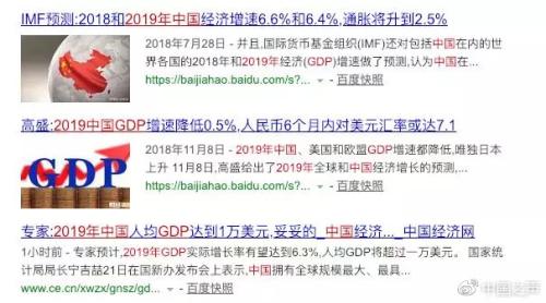 文章作者方可成指出,以搜索“中国2019年GDP”为例,第1、2、4、5条结果全是百家号,没有一条报道的是前一天公布的最新数据,只有第3条中国经济网的结果是最新的。另外,方可成搜“特朗普”、“人工智能”等关键词,结果几乎都来自百家号。
