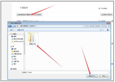 这时候打开浏览器的程序扩展,打开开发者模式,点击加载已解压的扩展程序,然后选择刚才新建的含有4个文件的文件夹即可。