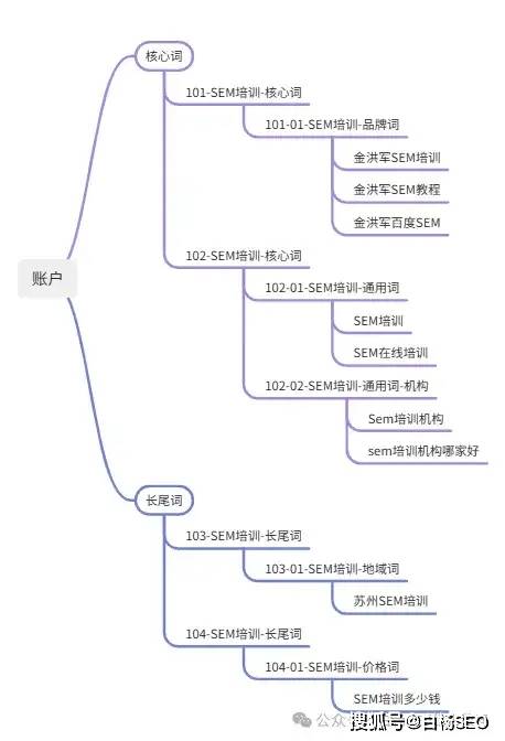 账户结构的作用,主要是对关键词和创意进行分类,方便以后对账户管理,数据统计分析。
