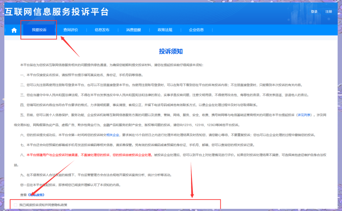 1. 搜索“互联网投诉平台”并点击“我要投诉”进行申诉。