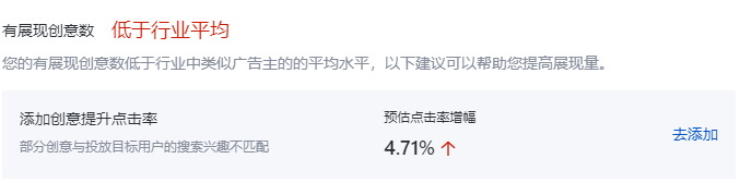 创意展现数偏低,主要是创意与投放目标用户的搜索兴趣不匹配造成,分析搜索兴趣,多增加相关创意。