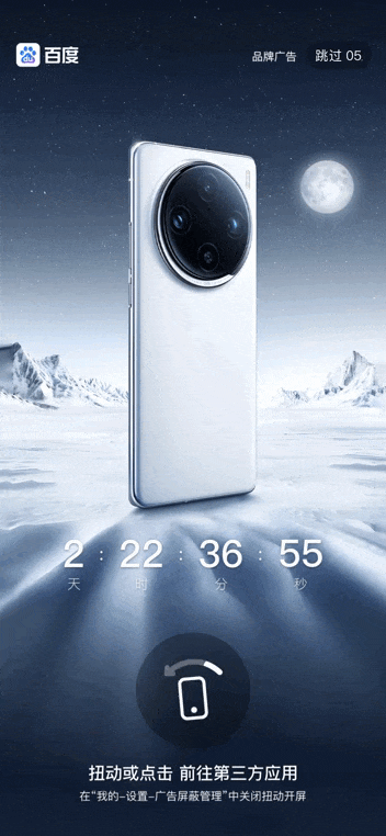 百度APP开屏展位黄金位置大曝光,通过在开屏区域增加时间倒计时、日期倒计时样式,精准引导用户点击跳转至品牌新品发布会、直播活动等落地页,为品牌新品发布、限时活动等营销场景提供强有力的支持。
