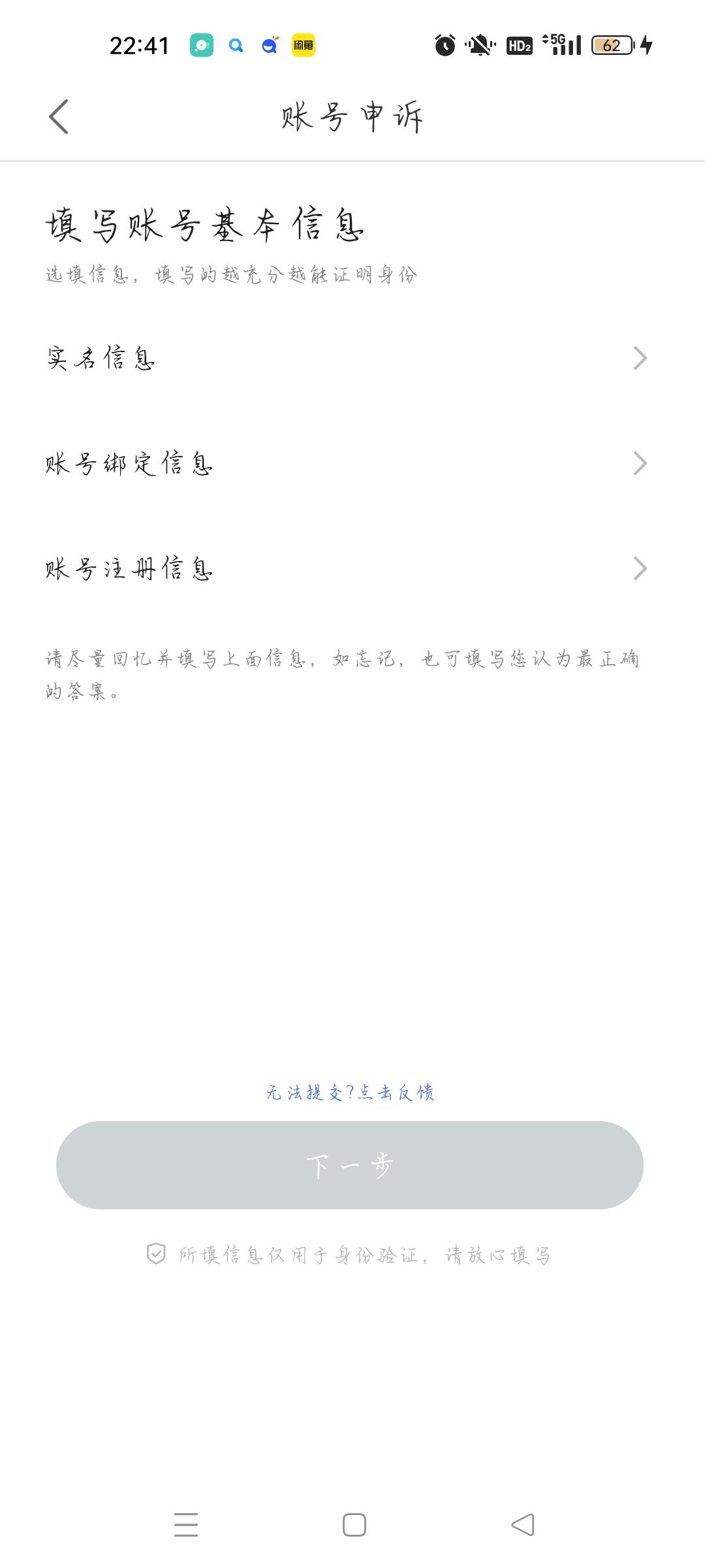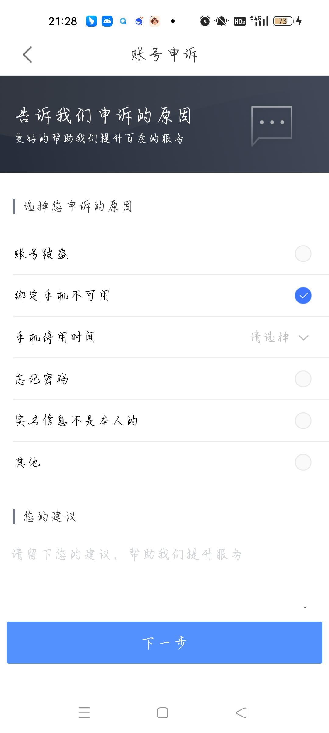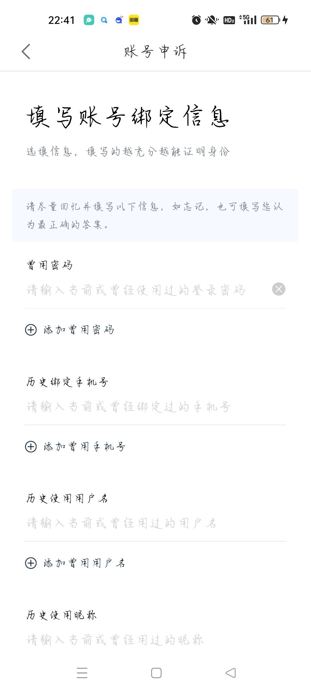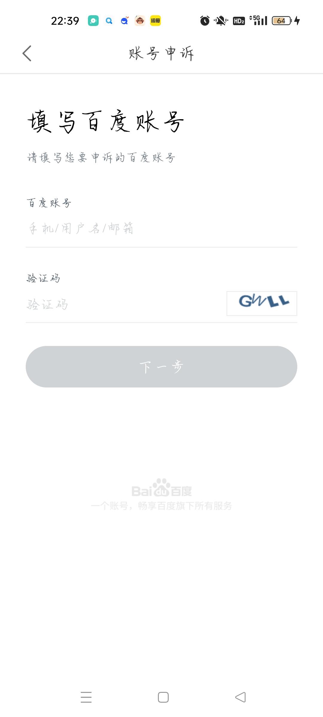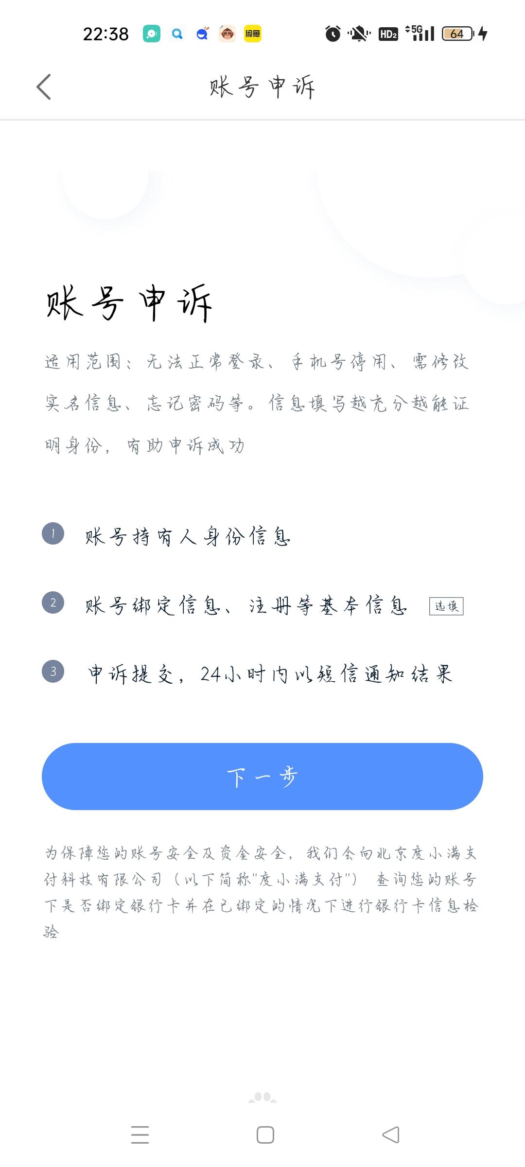 最初只绑定了一个已注销的手机号的账号申诉界面状态,还会存在百度订单界面,绑定QQ与微信选项栏