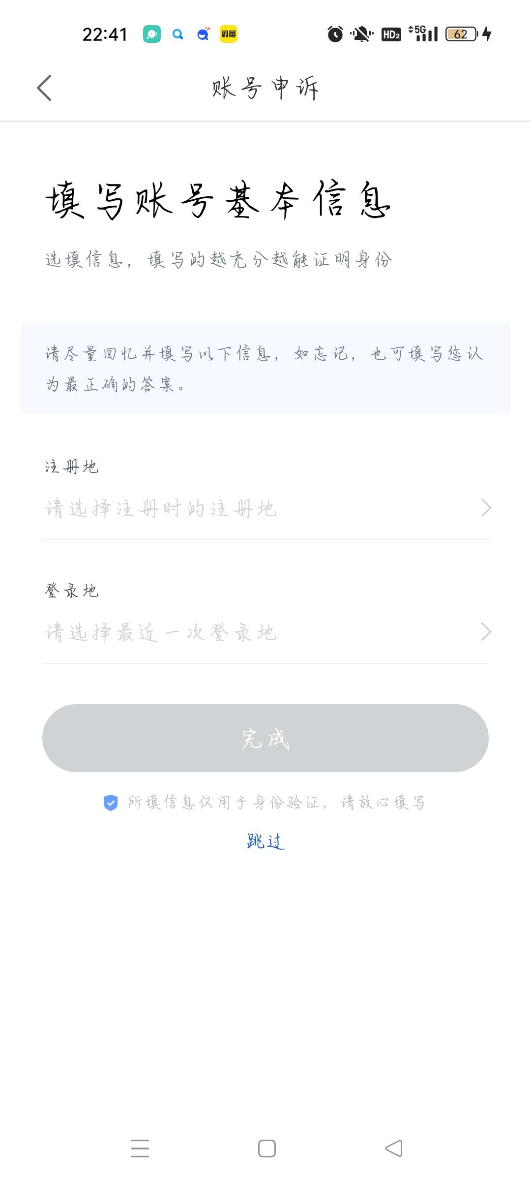 然后会让是否验证,此处由于该账号只绑定了一个被注销的手机号,则选择其他验证,但是之前该账号未绑定邮箱和微信,密码也忘了,在手机网盘app中虽然一直保持自动登录状态,但是密码不知道。于是点击去申诉