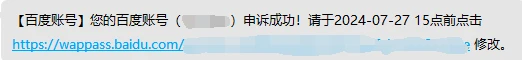 申诉成功后会收到修改换绑的地址信息如下