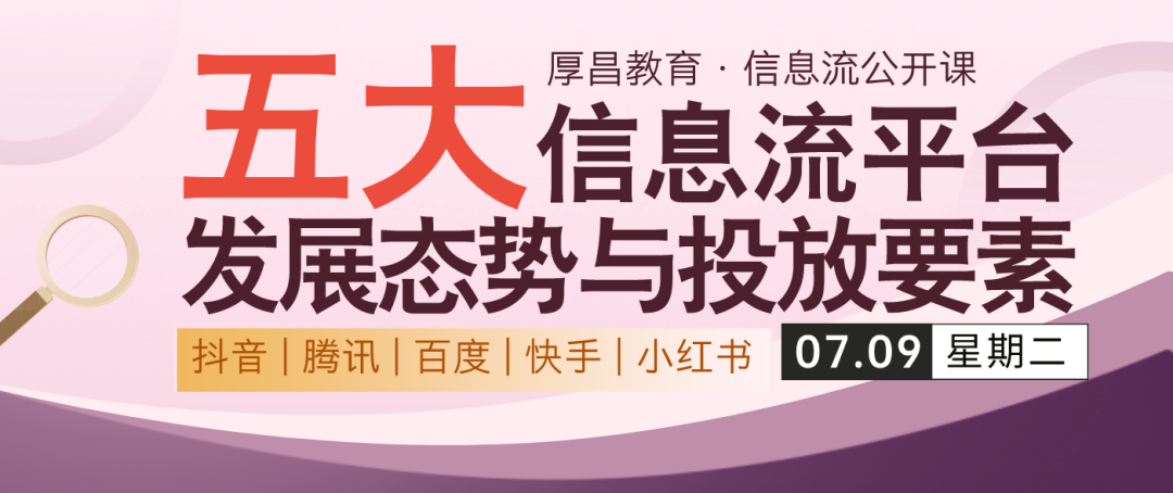 本次公开课,会围绕当前信息流广告五大主流平台——抖音、百度、腾讯、快手、小红书进行讲解。