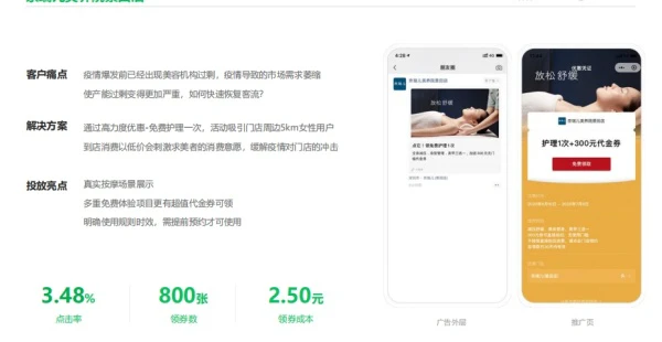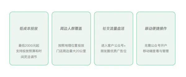 附近推的推广形态就比较单一了。只可以是图文形式去展现不可以放视频,以发放免费优惠券和收集表单为主。当然了,也可以做付费型式,用户通过在线支付后凭卡卷到门店核销使用。一般附近推的广告位有朋友圈信息流、订阅号列表、公众号底部、公众号文中、支付订单详情共五个广告位。