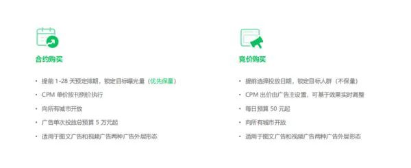 合约购买起投门槛为5W,提前1-28天预定排期,锁定目标曝光量(优先保量)