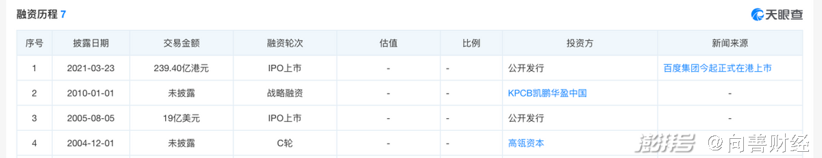 2023年8月14日吉利发布极越品牌,8月18日百度港股股价大跌8%,随后百度股价也是一路向下,直到11月底才微微反弹。天眼查APP显示,百度2021年3月登陆港股,彼时交易金额达到239亿港元。