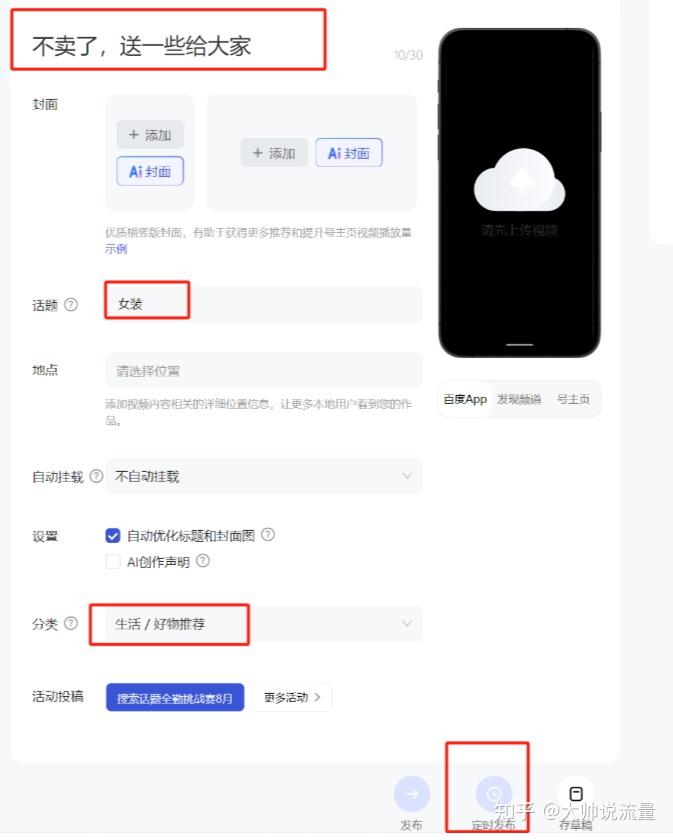 点击直播之后,在右上角是有一个预约直播的按钮,进入预约直播的界面之后,设置好直播的标题跟直播简介,然后方面再放一张横版的封面图片,选择好自己的分类跟标签。