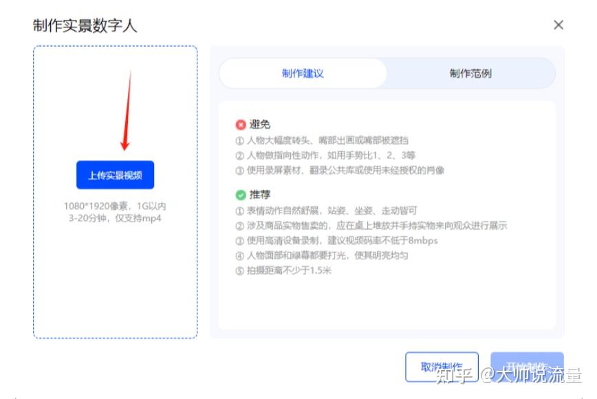 之后在百度直播这个平台上面上传自己的数据人,在上传的过程中,平台会有提示的按照要求来就行