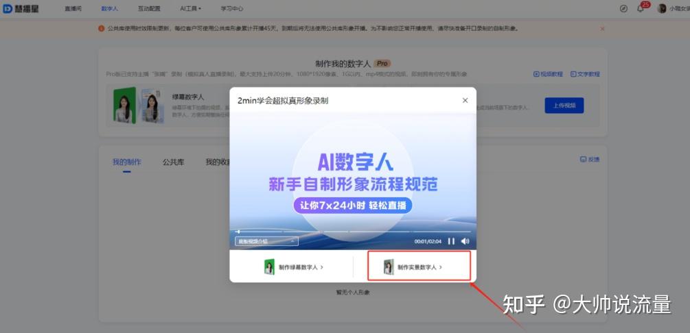以上就是实景数据人的制作方式,除了这个之外还可以制作绿幕数字人,这种方法的话,跟上面的步骤都是大同小异的。平台也有详细的教程自己可以去看一下。
