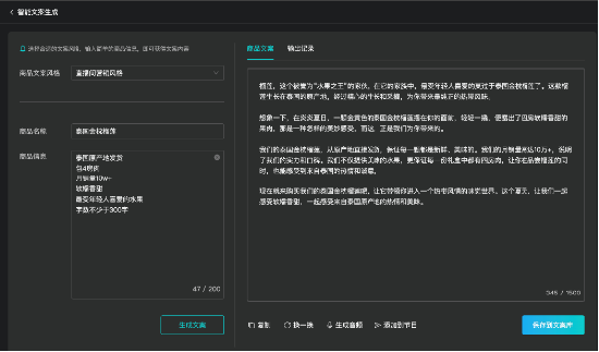 结合百度文心大模型及电商行业的数据积累,百度智能云曦灵打造出了更适用直播环境的“营销大模型”。当运营人员输入“泰国金枕榴莲”、“包四房肉”、“月销量10w+”、“字数不少于300字”几个关键词后,几秒内平台便可直接通过大模型的创作能力,写出一段完整的推广文案,还可以生成开场破冰、福利放送、暖场、催单等各类控场话术。针对用户弹幕互动,也可通过大模型生成智能问答直接回复,覆盖诸如退换货规定、发货时间、优惠力度等众多常见问题。