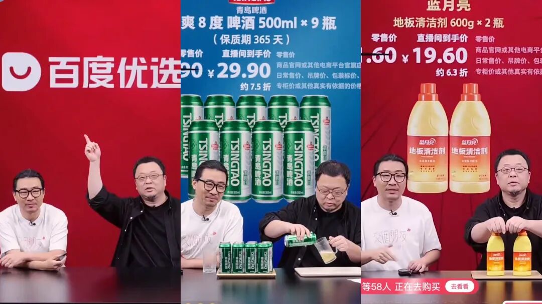 2024年,百度上线了新的电商平台“百度优选”,并邀请陈佩斯与朱时茂这对国民组合搭档进行直播带货,整场直播GMV超1300万元。两人下播后,朱时茂的数字人形象还继续直播。