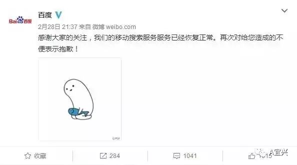昨天晚上,百度搜索移动端(含手机浏览器及手机百度APP)出现故障,无法正常使用。搜索时会弹出“很抱歉,您要访问的页面不存在”的提示页,但百度搜索PC端服务正常。昨天21时19分,百度通过官微回应称,关于百度移动搜索页面突然无法访问,正在紧急排查,“很抱歉给大家带来不便”。21时37分,百度再度通过官微回应称,移动搜索服务已经恢复正常。