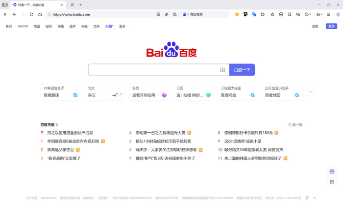2025年1月17日,《新品牌》获得了新版百度PC端首页的测试截图,截图显示,百度PC端首页在原有导航条的基础上新增了百度翻译、天气、彩票、日历、百度网盘、百度地图的入口,同时提供百度热搜榜单。这是自2011年推出百度新首页以来,百度PC端首页可能迎来的最大改版。