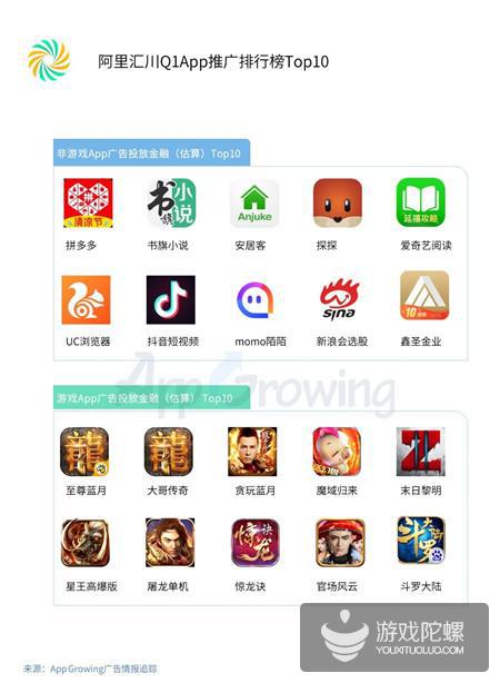 阿里汇川:传奇类游戏分列游戏App的广告投放金额Top3